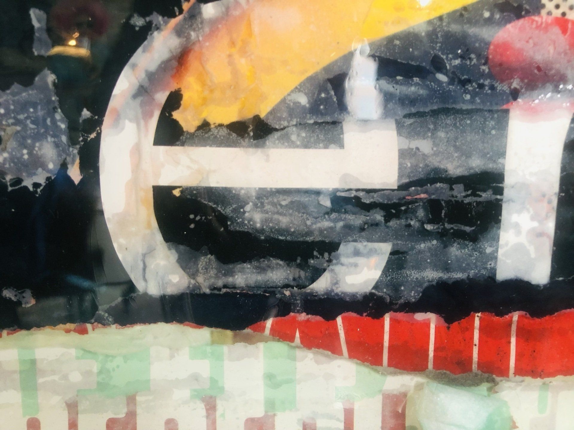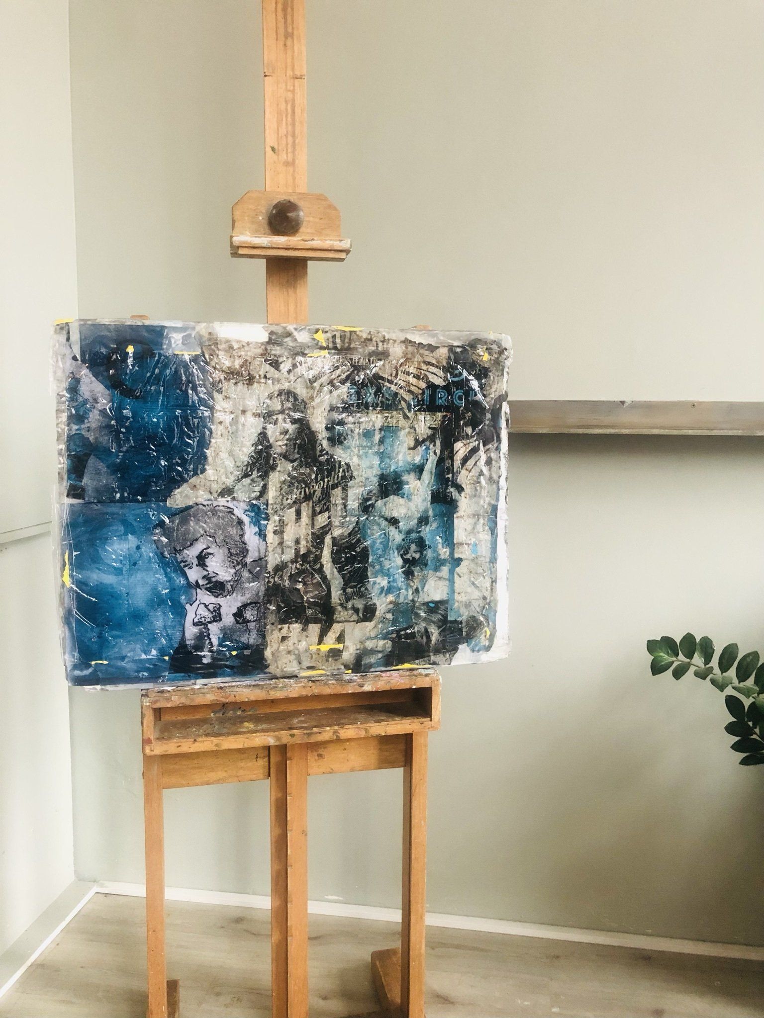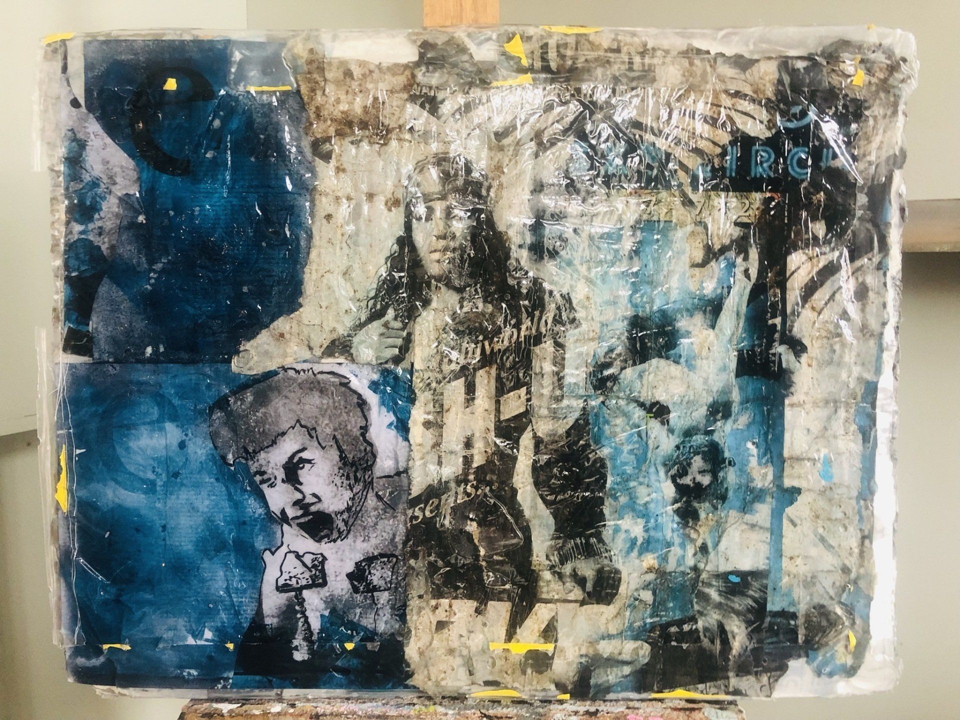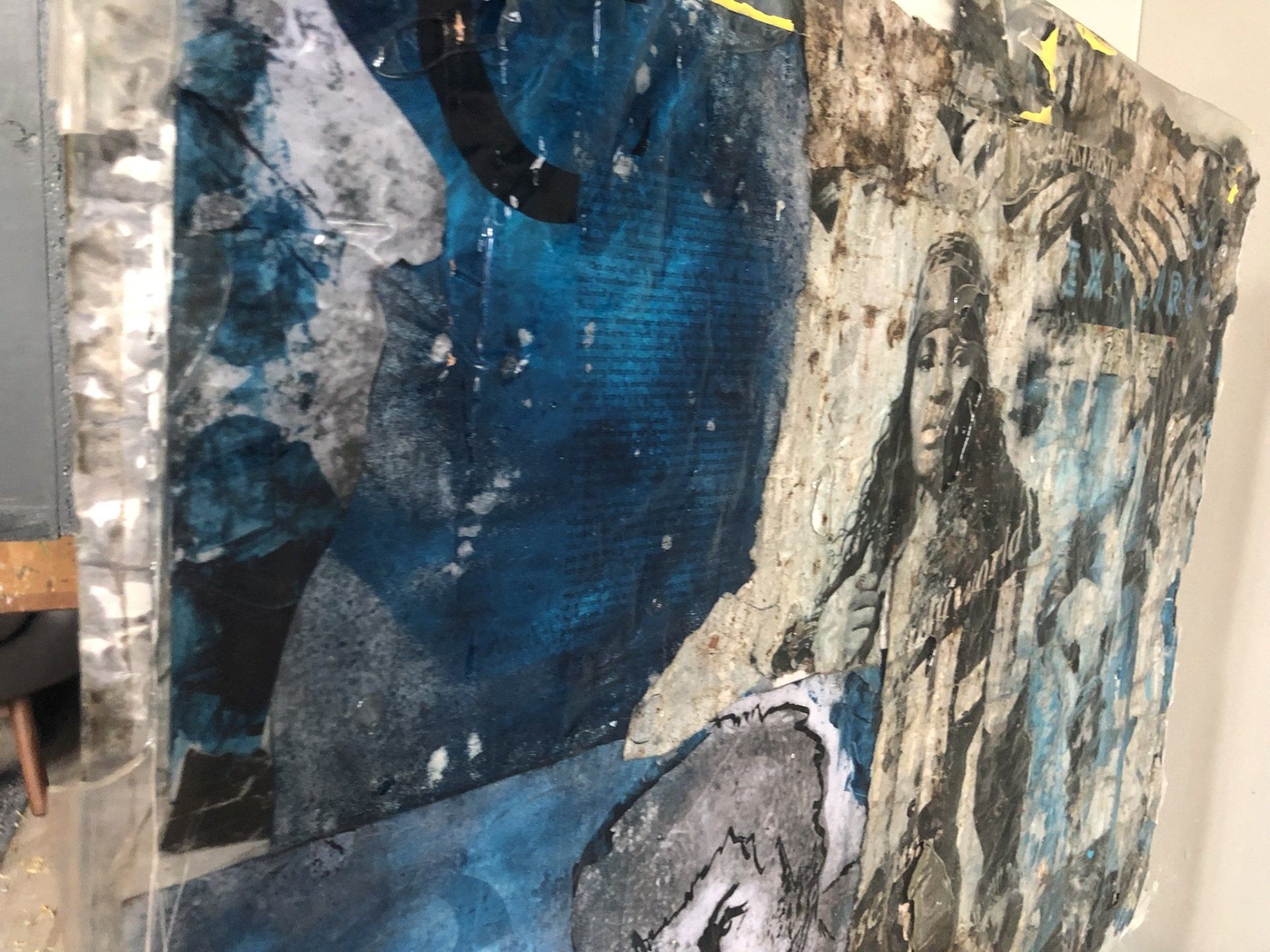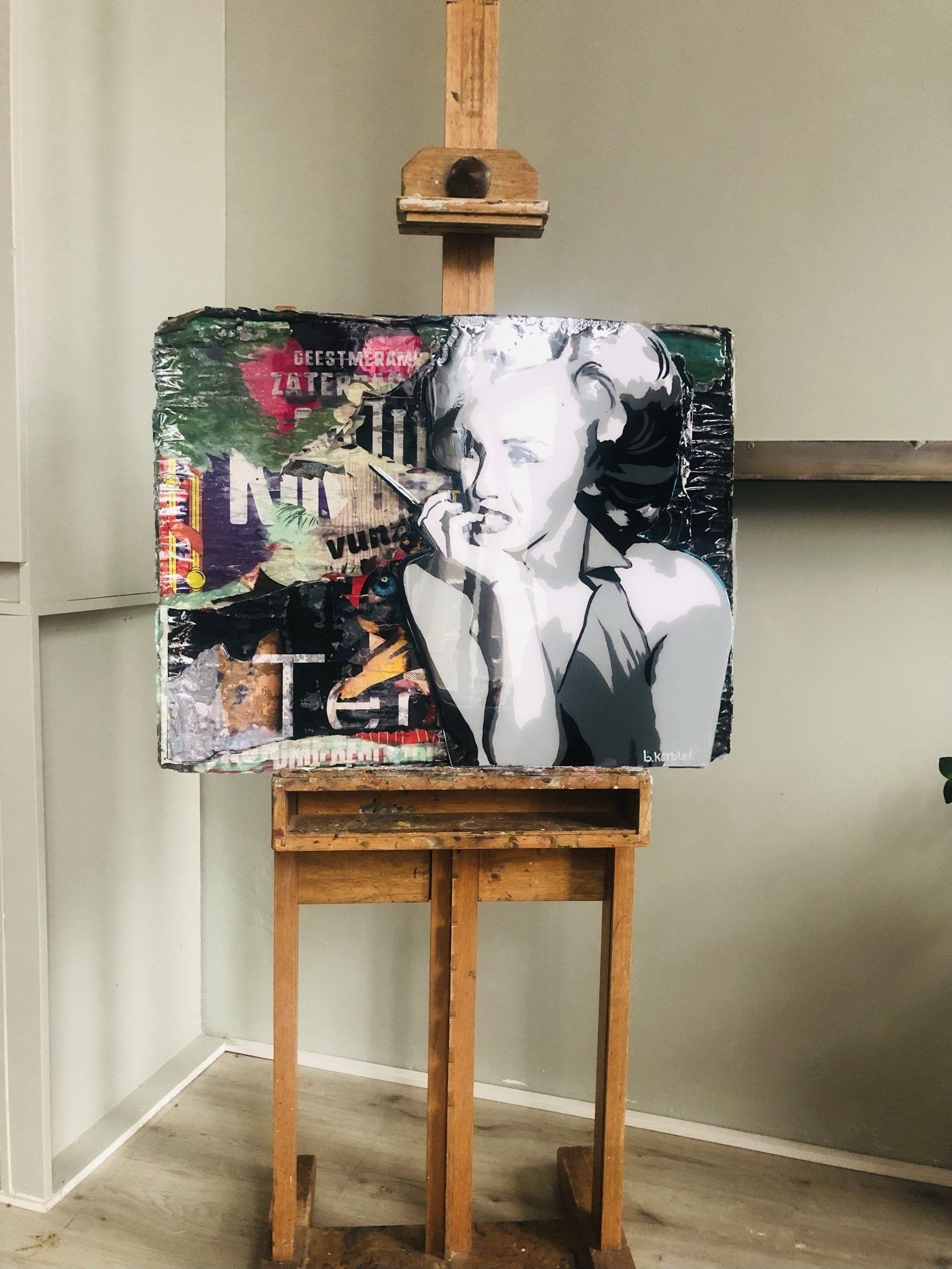 Het portret is geschilderd met acryl op een foam laag,