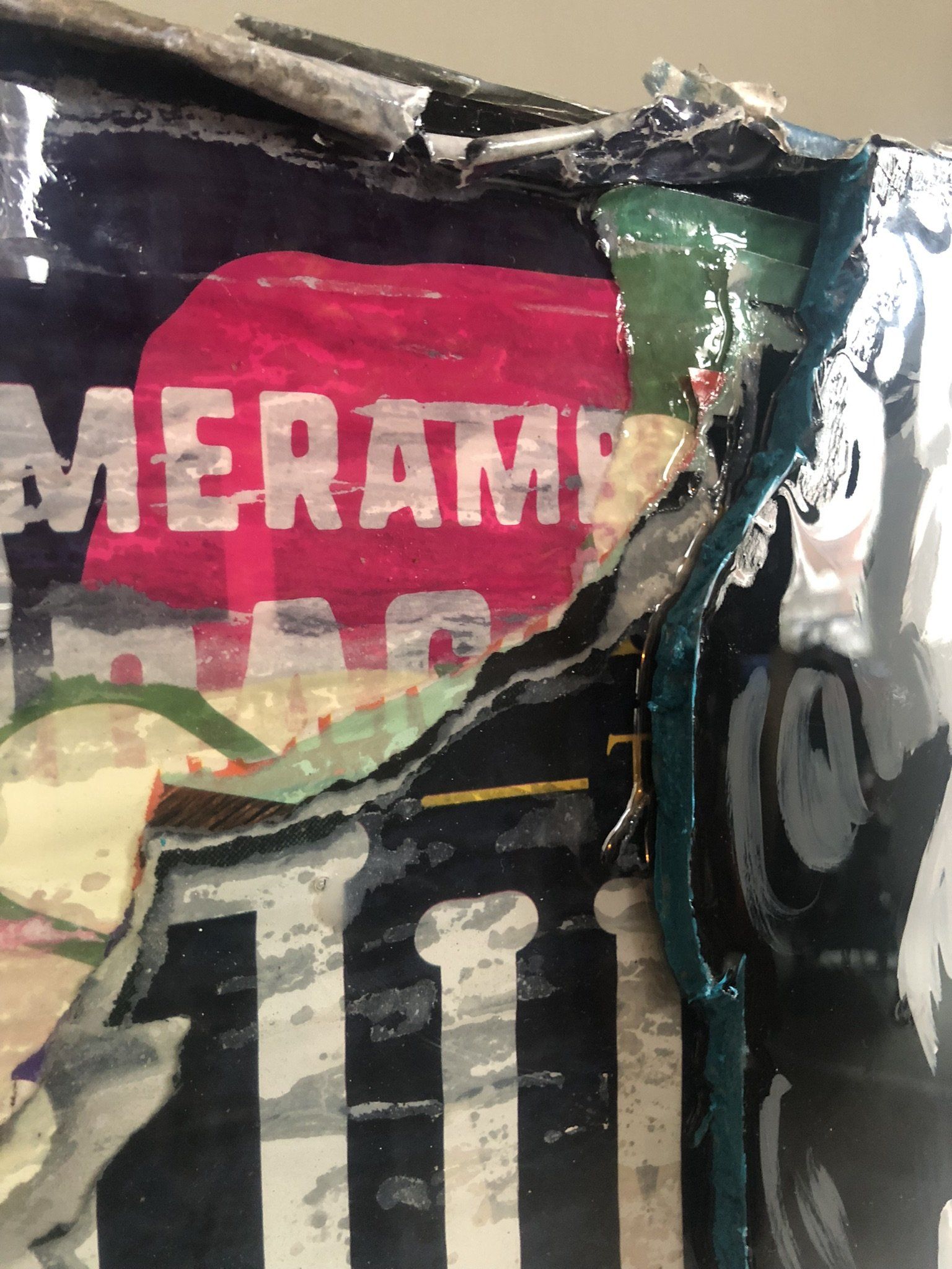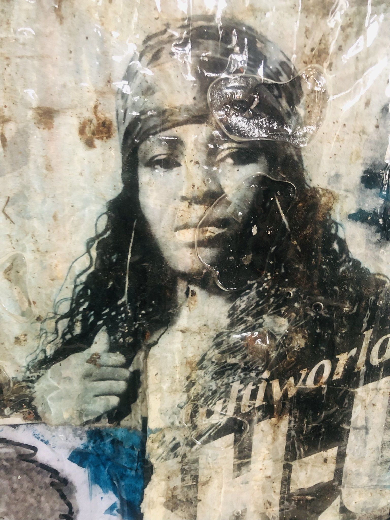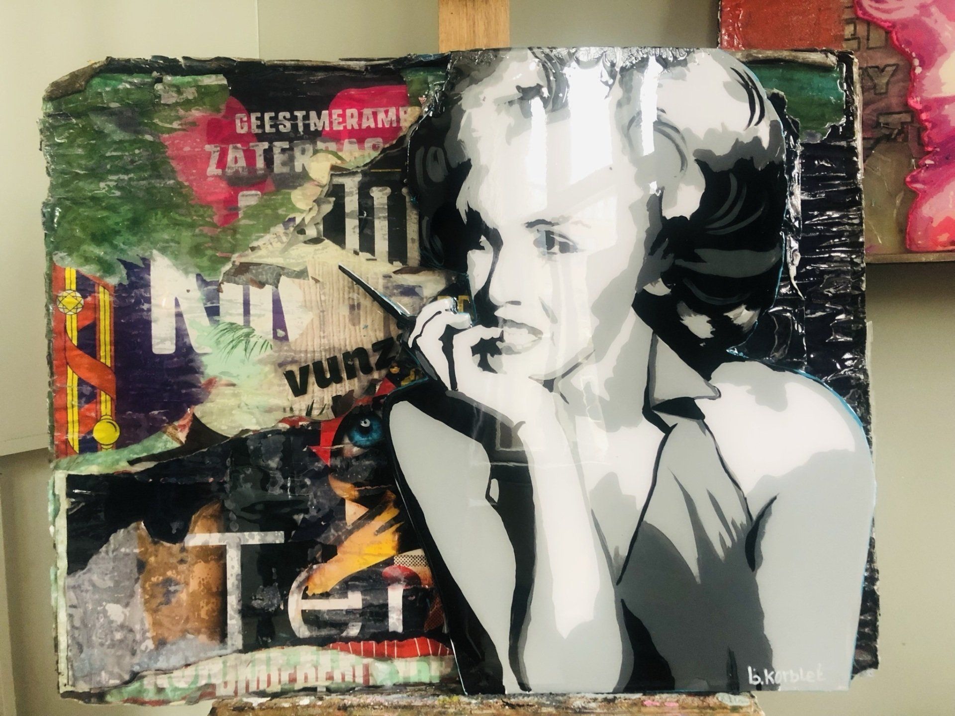 Het portret is geschilderd met acryl op een foam laag,